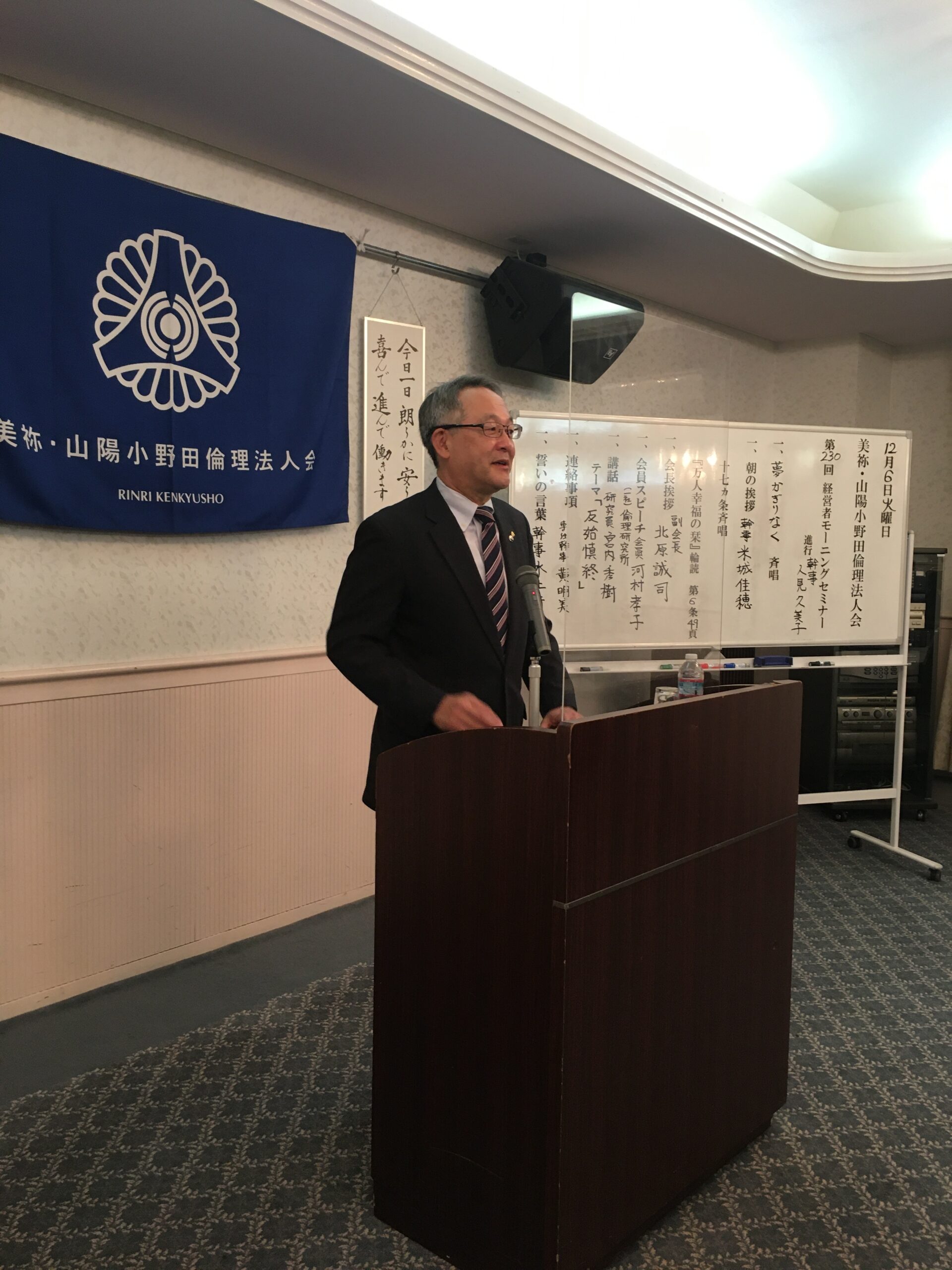 本日の美祢・山陽小野田倫理法人会モーニングセミナーは倫理研究所 中四国方面長研究員 宮内 秀樹氏に「反始慎終」と題して御講話頂きました。