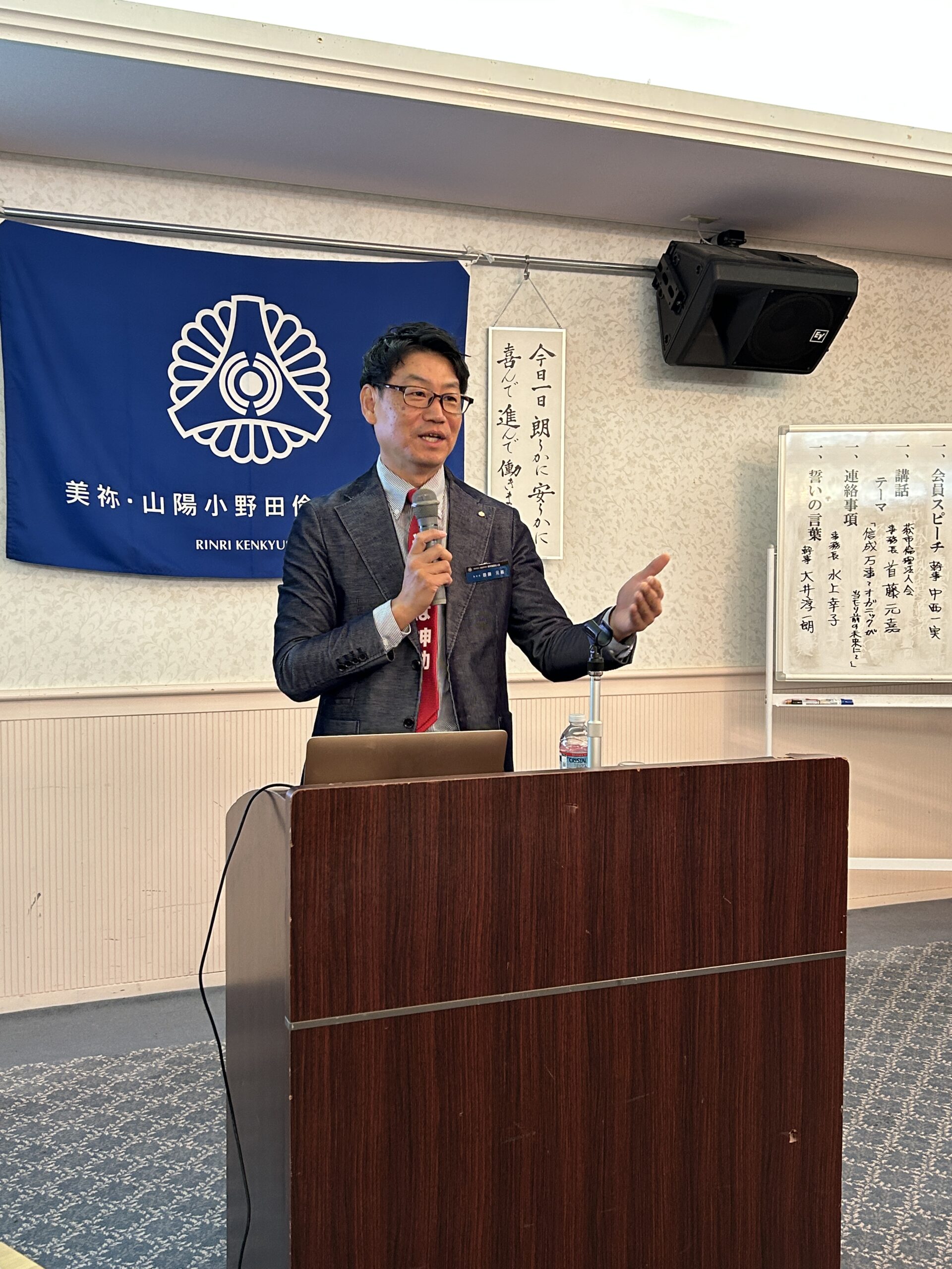 本日の美祢・山陽小野田倫理法人会モーニングセミナーは北九州みやこ倫理法人会 相談役 越野 修司氏に「おいしさで笑顔を創る」と題してご講話頂きました。