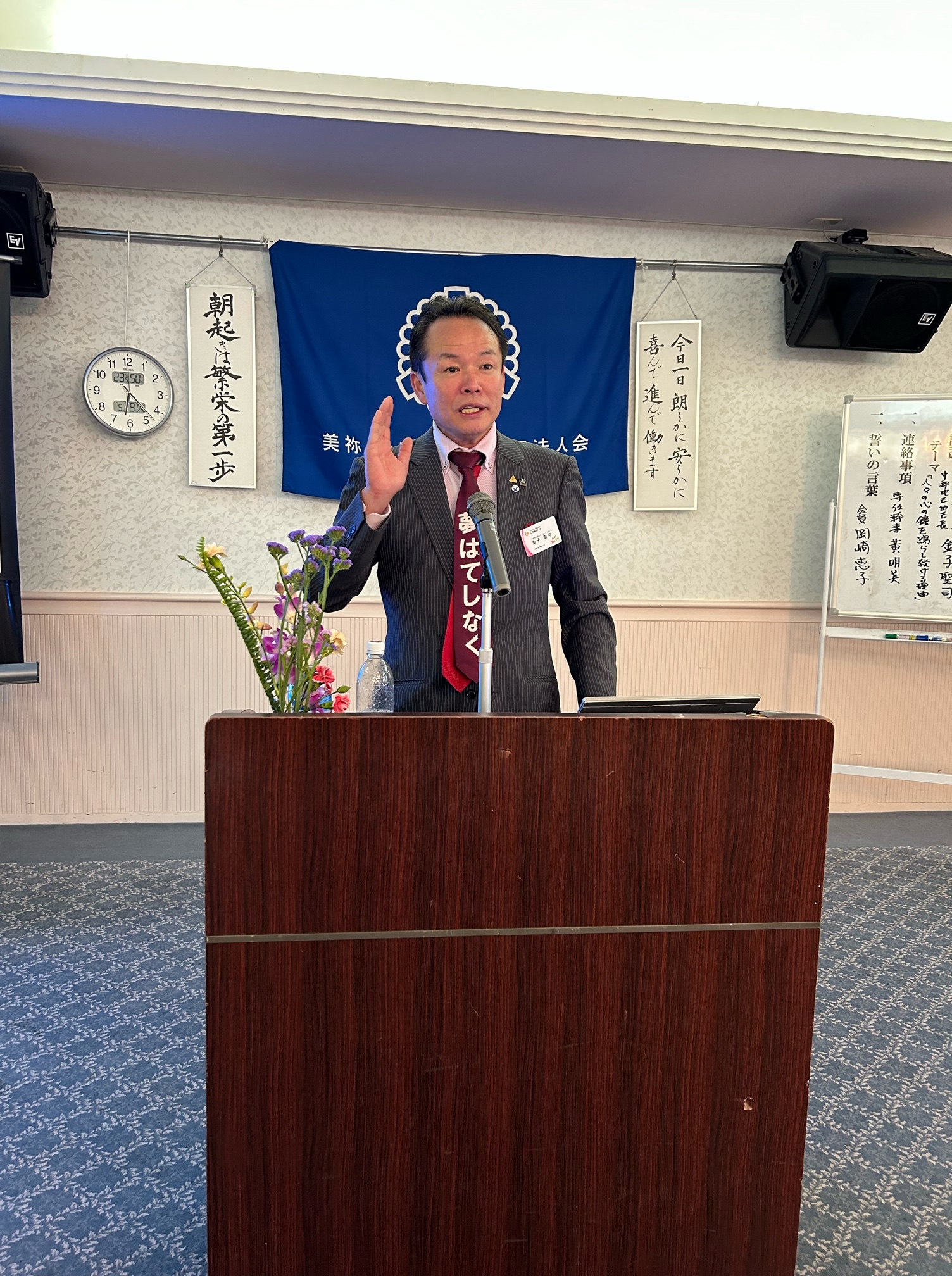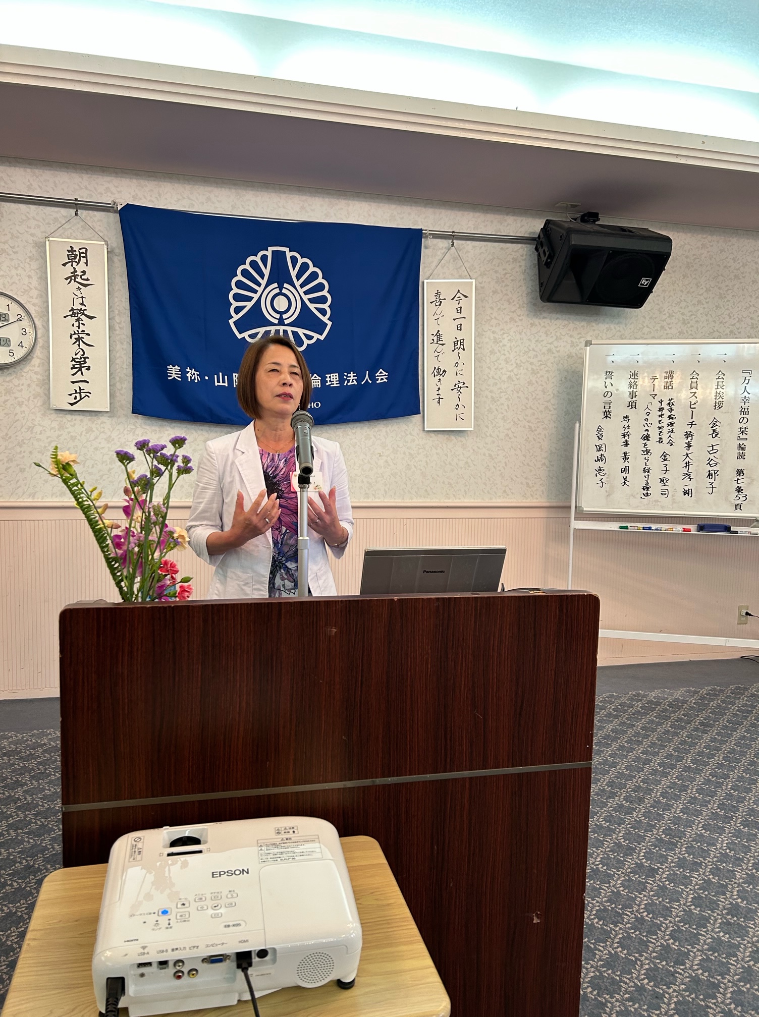 本日の美祢・山陽小野田倫理法人会モーニングセミナーは山口県倫理法人会 中部地区 地区長(株)エリナ販売店 金子 聖司氏に「人々の心の鐘を鳴らし続ける理由」と題してご講話いただきました。