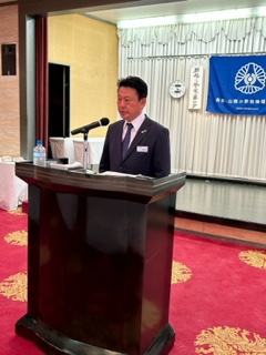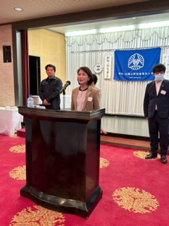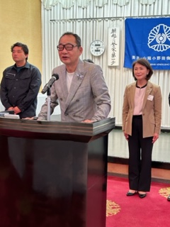 会員スピーチ 実践目標の発表 黄 正吉副会長、北原 誠司副会長、黄 明美専任幹事、水上 幸子副事務長、佐々木 翔平さん