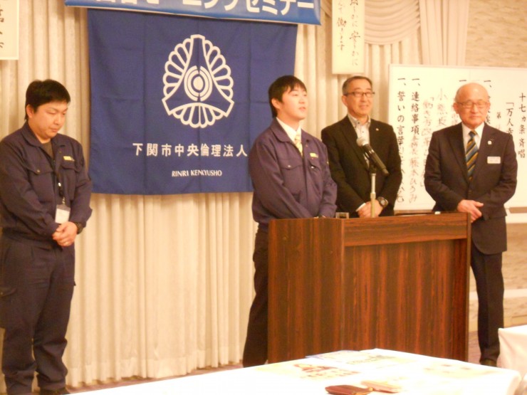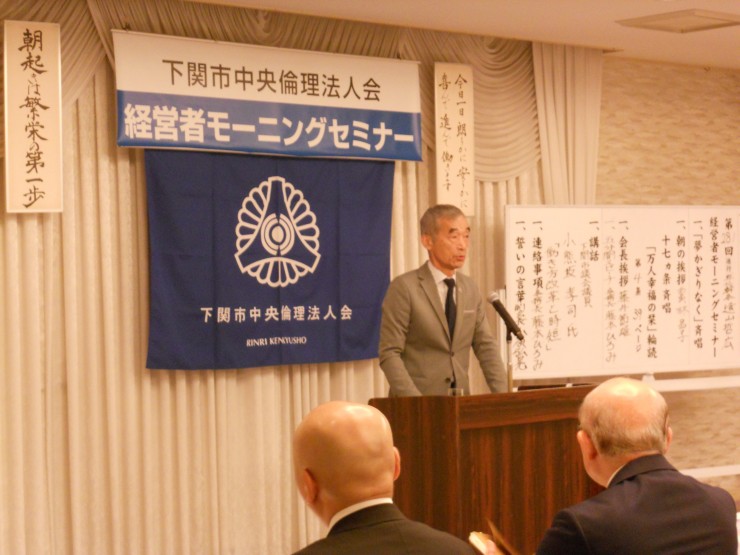 【講話】 講師:小熊坂 孝司 氏 (下関市市議会議員) テーマ『働き方改革と時短』 海外研修で見た働き方に衝撃を受け、自社に持ち帰り、現場に取り入れました。 その後、苦難もありましたが、自分の信じる道を貫く小熊坂さんが垣間見れました。 『一生懸命だと知恵が出る。』 『中途半端だと愚痴が出る。』 『いい加減だと言い訳が出る。』 最後に、武田 信玄の言葉で講話を締めくくられました。
