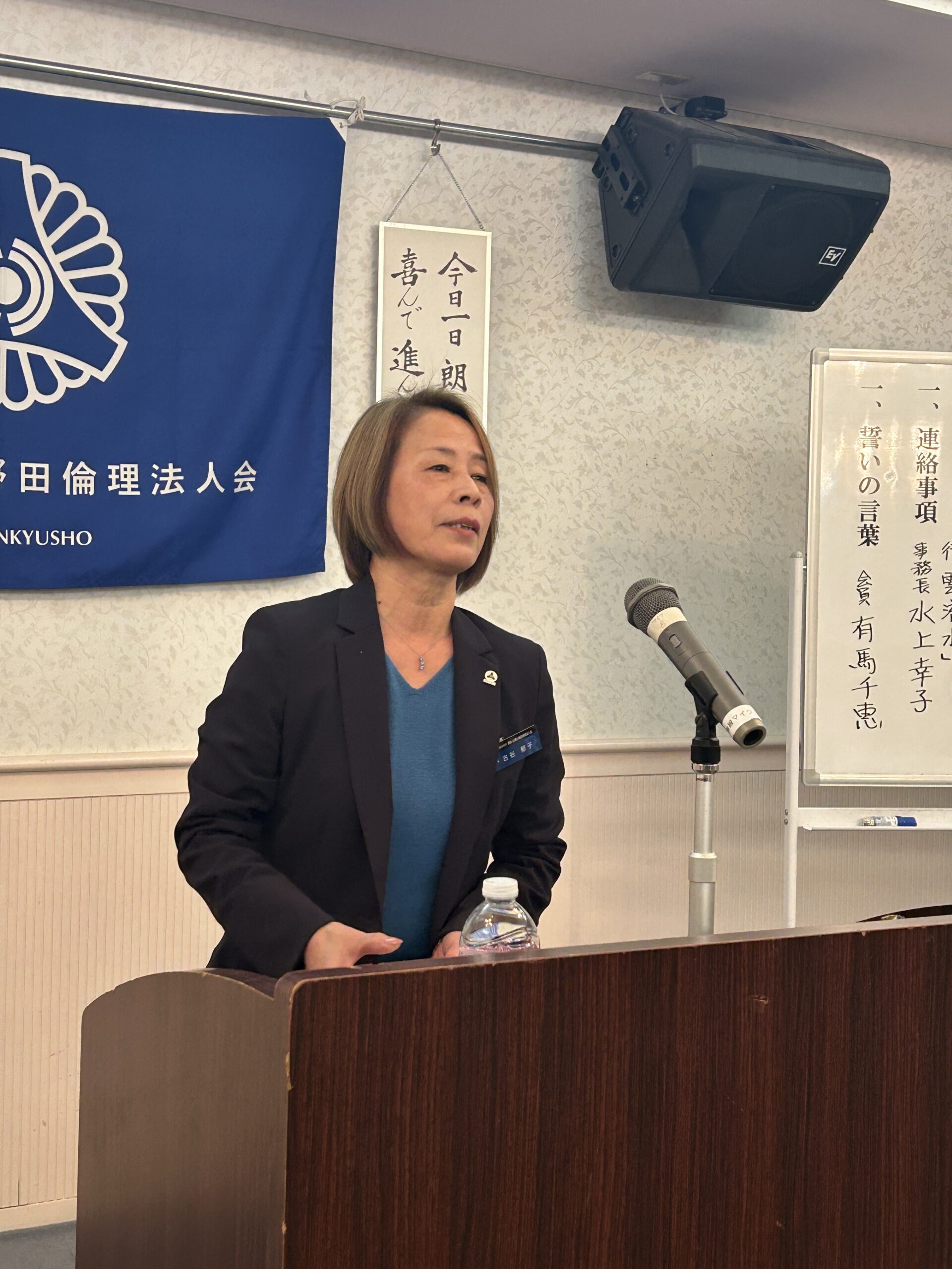 本日の美祢・山陽小野田倫理法人会モーニングセミナーは山口県倫理法人会 西部地区地区長 有馬 貴志さん。