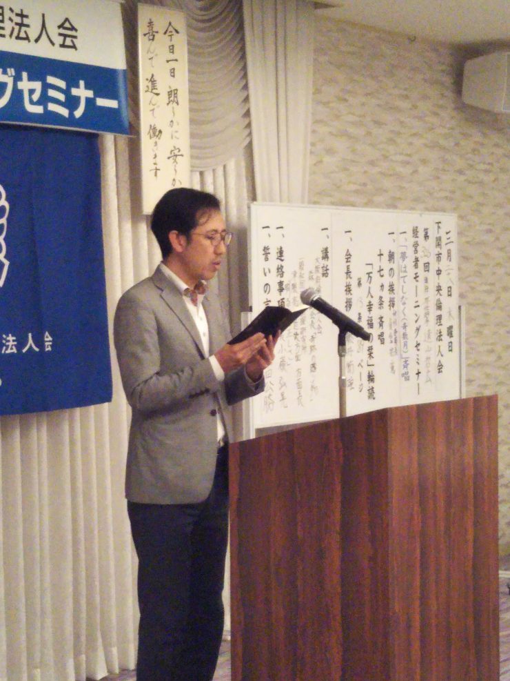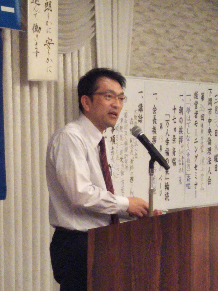 | 講師 | (一社)倫理研究所近畿方面方面長 津隈 亮二 氏 大阪府倫理法人会副会長 森 勲 氏 |