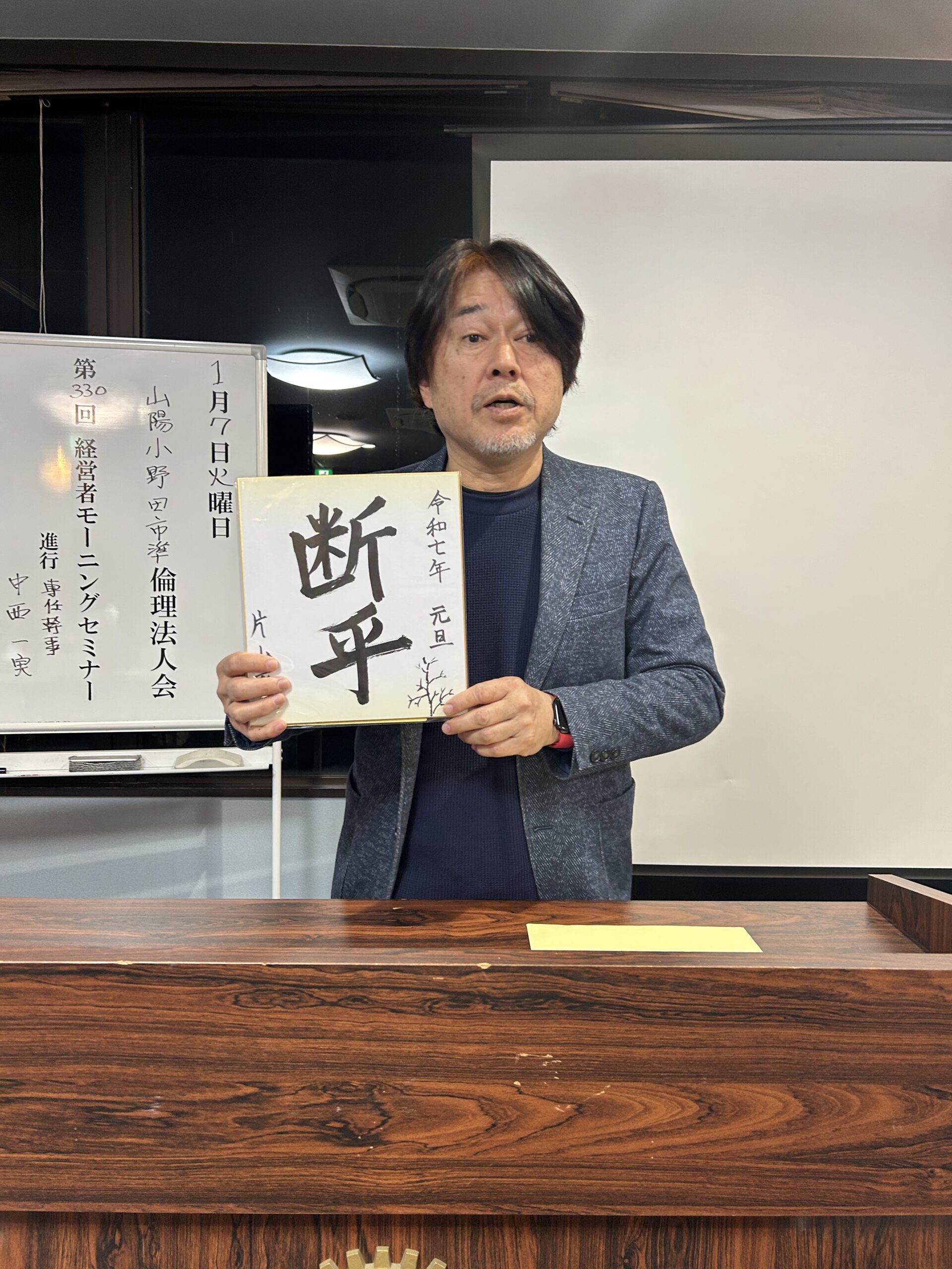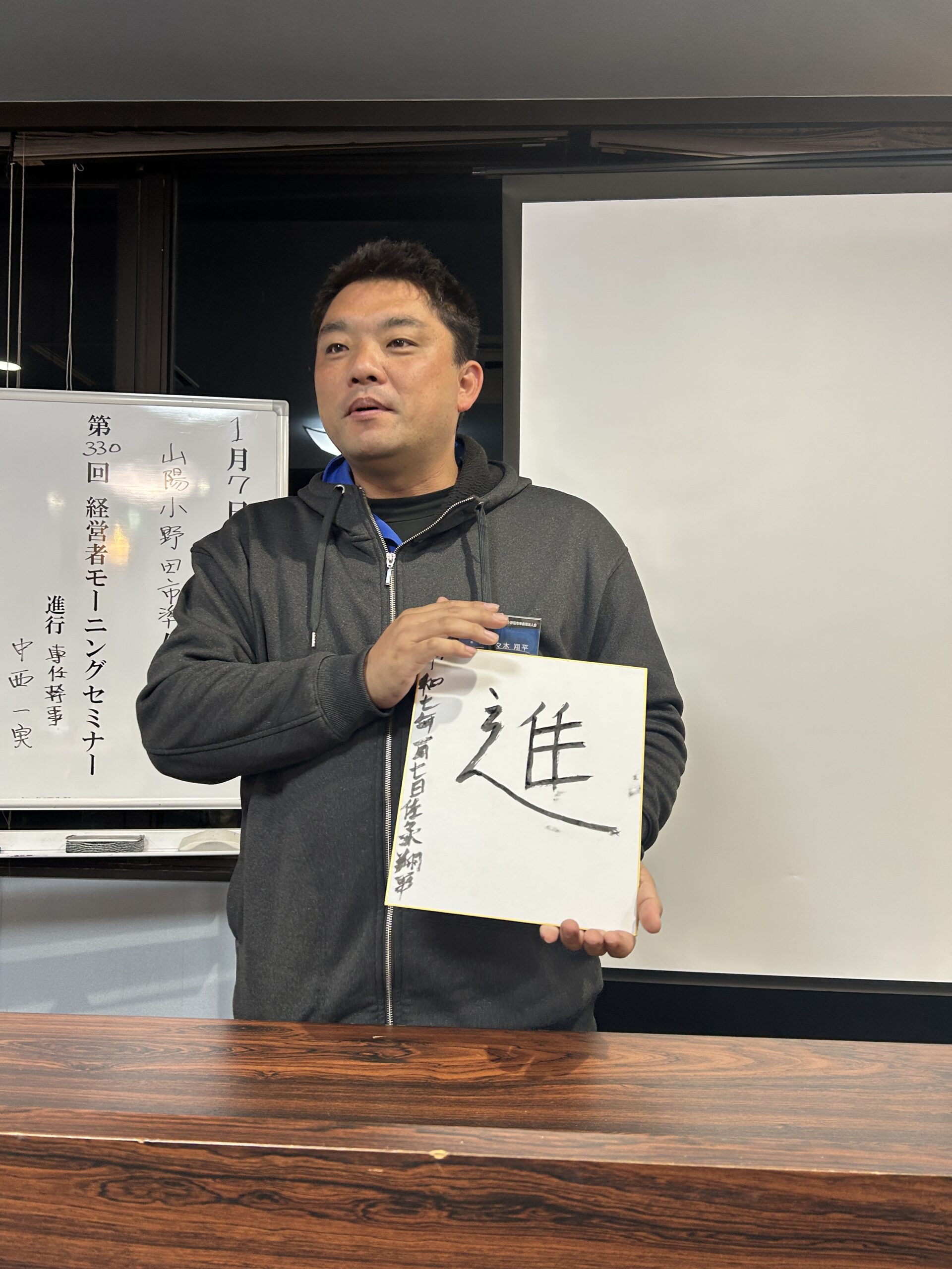 本日は、今年1回目のモーニングセミナーということで参加者全員による書き初めをいたしました。