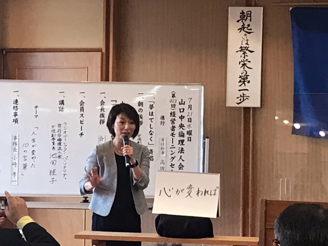 | 講師 | 池田桂子氏(防府市倫理法人会 女性副委員長/ラジオディレクター・パーソナリティ) |