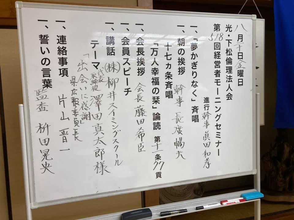 - 第720回経営者モーニングセミナー 講師:山口県倫理法人会 事務長 末冨秀史氏