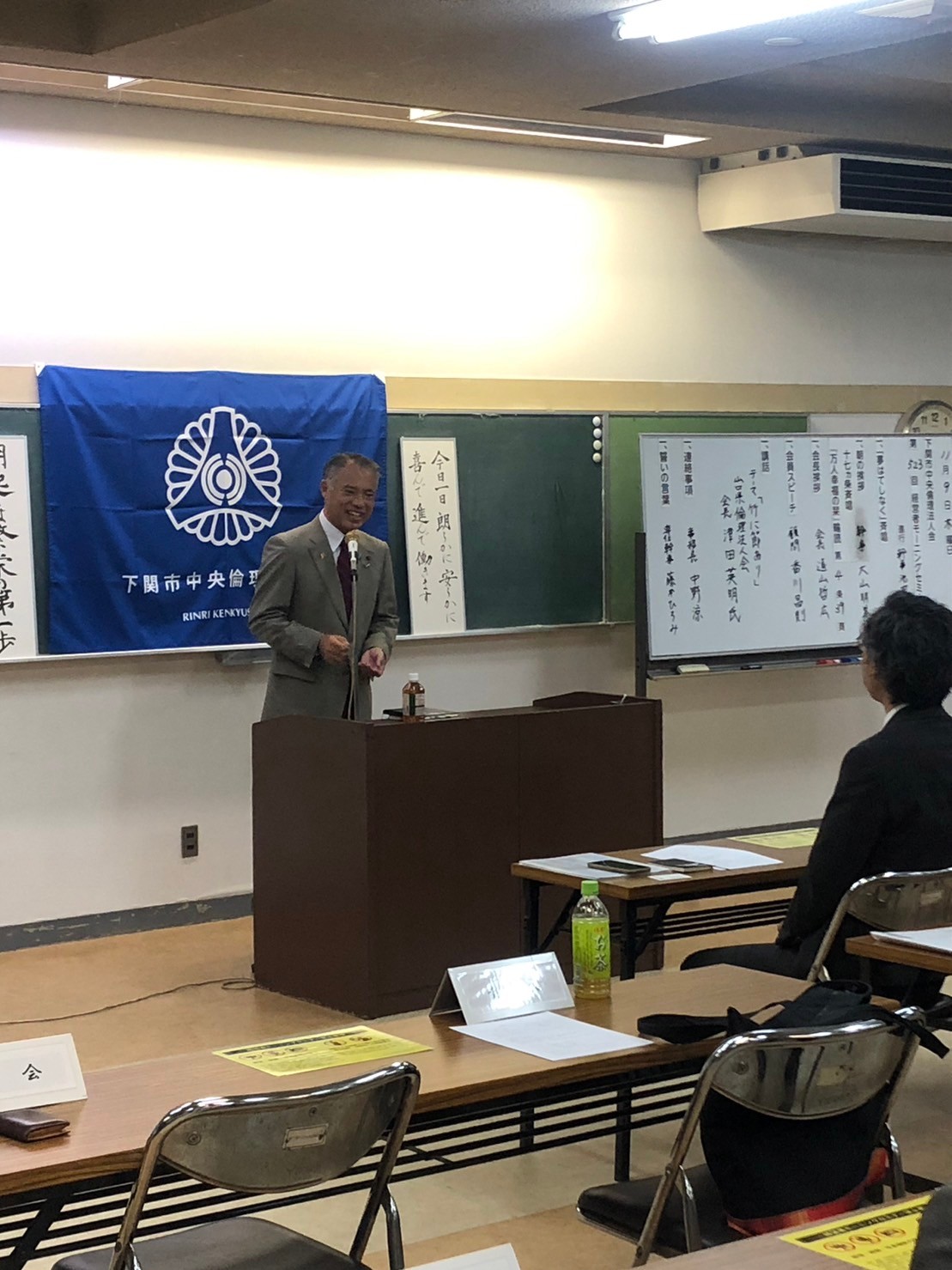 山口県倫理法人会の今年度の方針の紹介と、今までに家庭や職場で行った実践の報告をお話しいただきました!