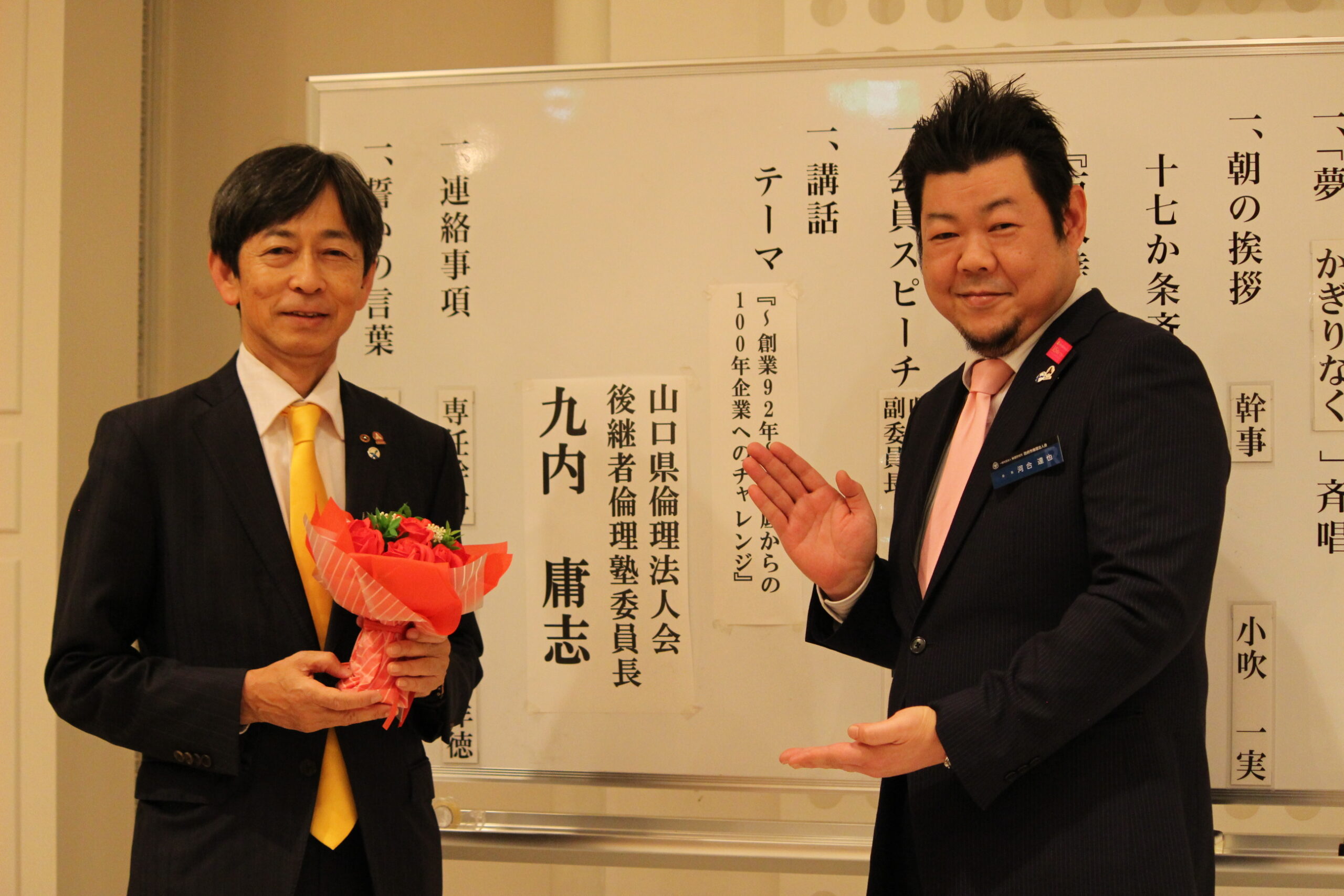 【 講話:山口県倫理法人会 後継者倫理塾委員長 株式会社九内代表取締役 九内庸志様 】
