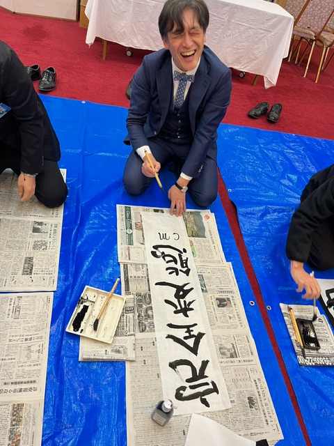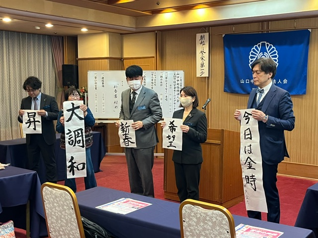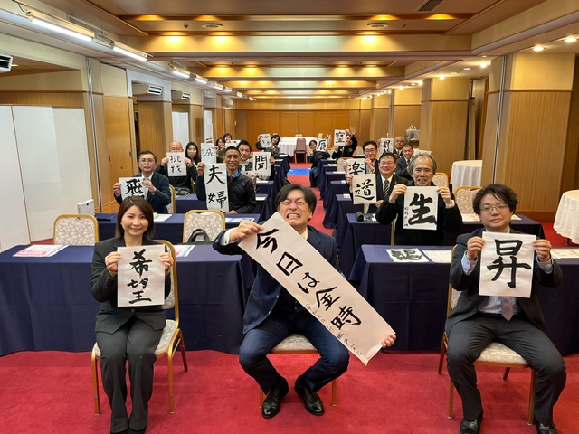 今回は今年初と言う事で、会長からの新年のご挨拶から始まり、参加者全員による新春書き初めを行いました。みなさんが思いを込めた書き初めについて、お一人ずつコメントをいただきました。