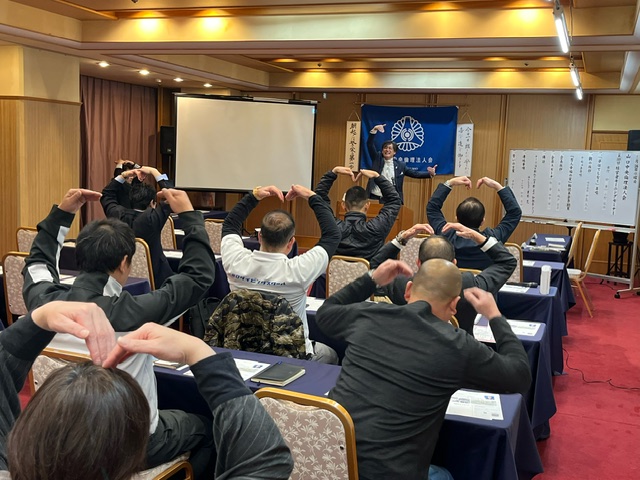 講話は、モーニングセミナーと活力朝礼のススメでした。何のために朝礼をするのか理解納得して参加する事が良い。家庭から職場への環境の切り替えや、大きな声を出すこと又は揃うことの美しさをみんなで追求する事でチームワークが上がることを目指すなど。朝礼をする事でお客さまからのクレームが減り、社員のストレスが減り、企業業績も上がるなどを学びました。