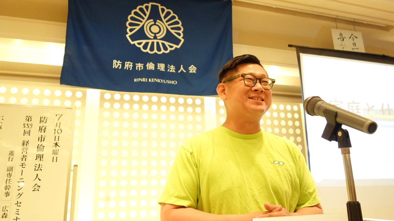 この6月にご夫妻で防府市倫理法人会のメガネ山口さんのお話しでした。大好きな山口を盛り上げるため、脱サラをした山口さんを後押しされたのは奥様でした。モーニングセミナーで朝から明るい仲間たちと楽しく学び、倫理を実践していくそうです。