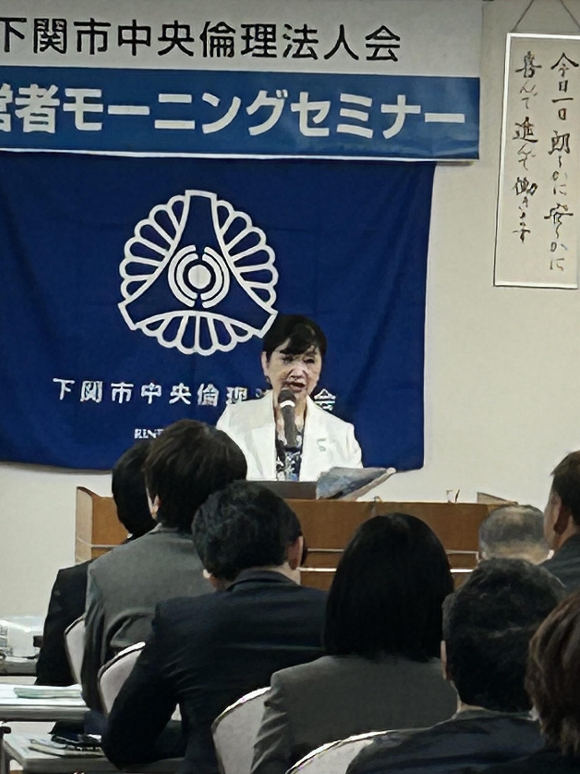 本日は山口県倫理法人会女性委員会主催の「令和7年度第1回 凛と輝く女性がつながるモーニングセミナー」が開催されました。