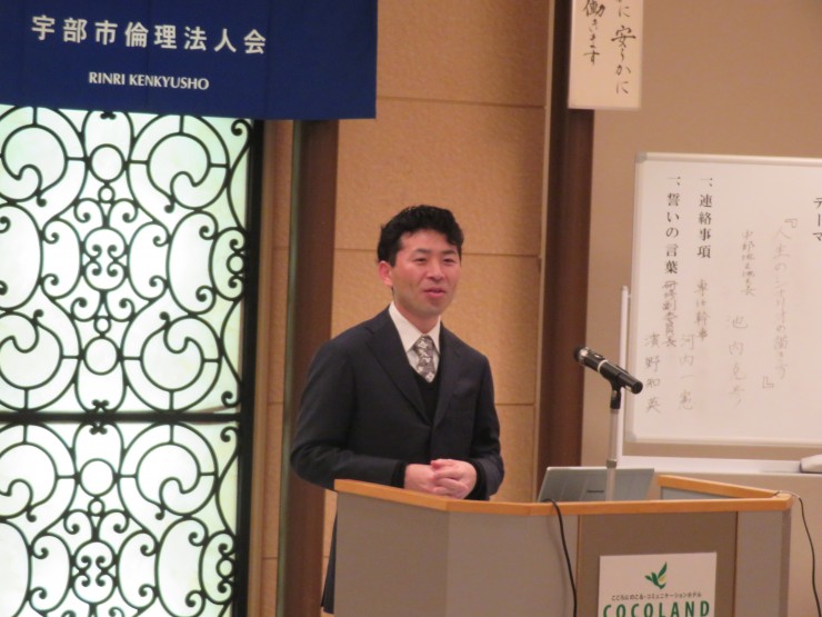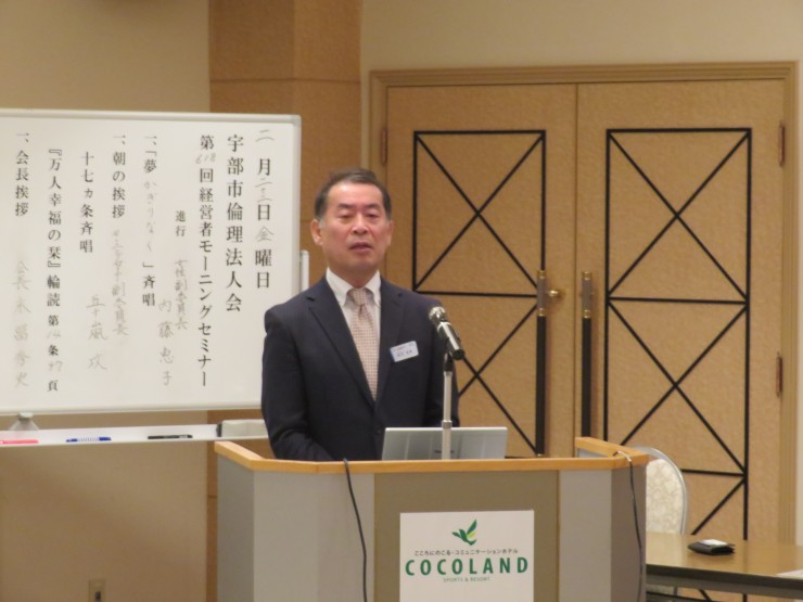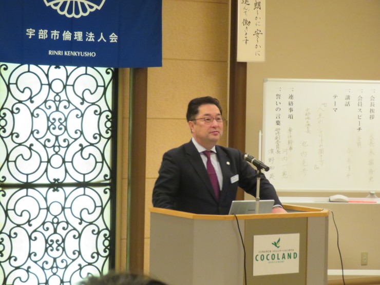山口県倫理法人会中部地区地区長の池内克彦氏にご登壇いただきました。