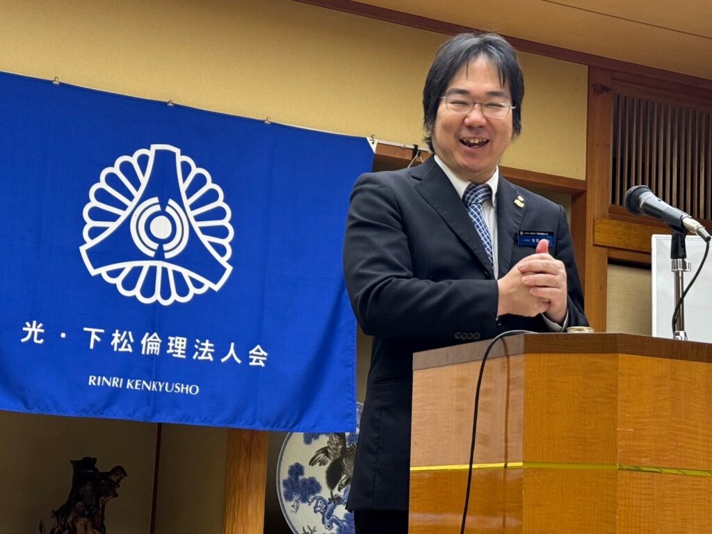 山口県倫理法人会の第一回後継者倫理塾卒塾生の牧野さん、ユーモアたっぷりで、かつ真剣に語る姿には好感が持てました。下関市倫理法人会の専任幹事としても、会長と共にいろいろなアイデアを実行されているようで、少しずつ結果が出ているそうです。「やればできる!」倫理の実践を明るく楽しく行われている姿に、私たちも見習わなくては!と思いました(^_^)