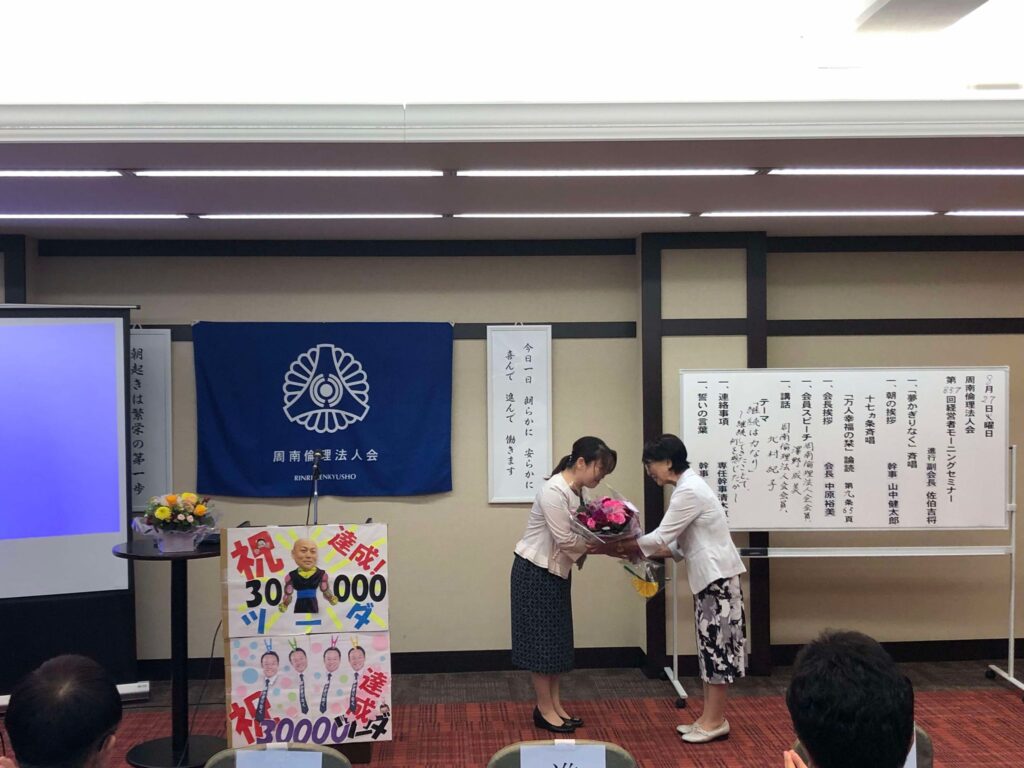 2024年8月28日(水) 第857回MS 講師:周南倫理法人会 会員 北村 紀子 氏 テーマ:継続は力なり~継続してきたことで何を感じたか?~