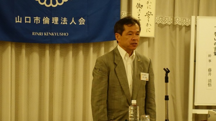 さて、講話は昨夜の仕事と倫理法人会との関わりの話に続き石津法人レクチャラーが、家族と倫理とのかかわりについて話をされました。