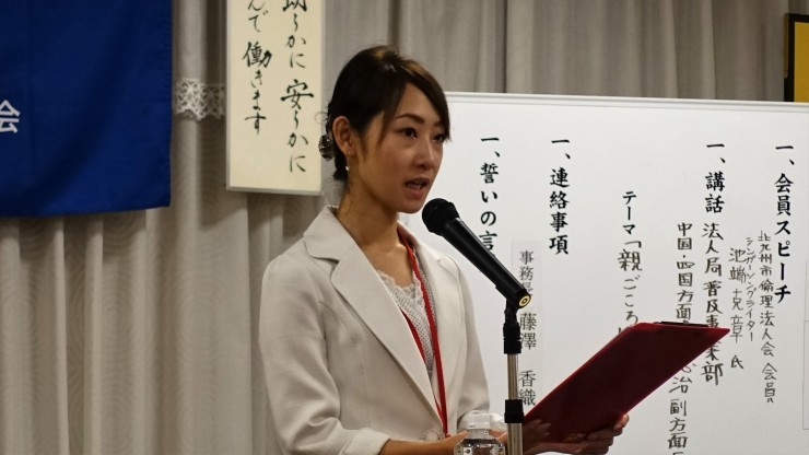 会員の河内山さんの紹介で、山口大学教育学部出身のシンガーソングライター池端克章さんの会員スピーチは、自己紹介と北九州市で倫理法人会入会の経緯と今後の展開について話していただきました。