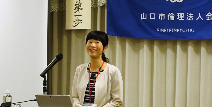 新入会員、江田光隆氏(若新)への会員証贈呈の後、中村晃子会員に紙芝居やイベントの司会を通して、人との触れ合いについて会員スピーチをしていただきました。