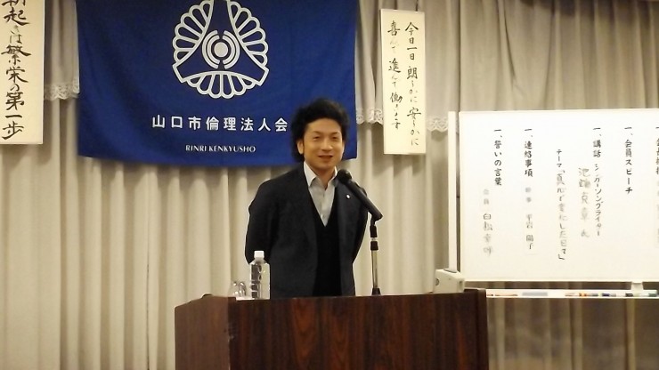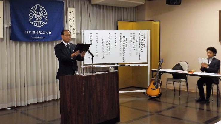 今年、北九州市倫理法人会に入会し、演奏先のモーニングセミナーに出席して、毎回実践しようと思うことがあると熱く語っていただきました。
