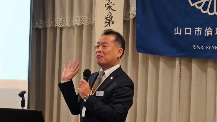 講話は、いつも笑顔で明るい防府市倫理法人会の池内克彦中部地区長でした。健康でいるために体に元々備わっている治癒力を引き出す医療を求めて新規にナチュラルメディカルセンターを10月に開設されました。研修会によく参加されている池内先生は、「薬を処方するだけではなく、自分にしかできない医療をこの手で治してあげたい。」と強い信念が伝わってきました。健康であるためには、からだ・こころ・エネルギーのバランスが大事であることを強く感じました。