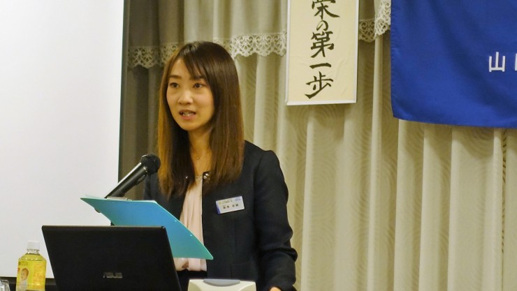 会員スピーチ:平岩陽子女性委員長で、「感謝について」。わがままだった自分が入会して家族やすべてのものに感謝でいるようになったことについてのスピーチでした。