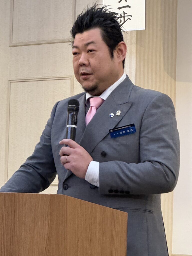 講師 河合 達也氏 (防府市倫理法人会 会長、ホルモン焼肉屋どん 代表)