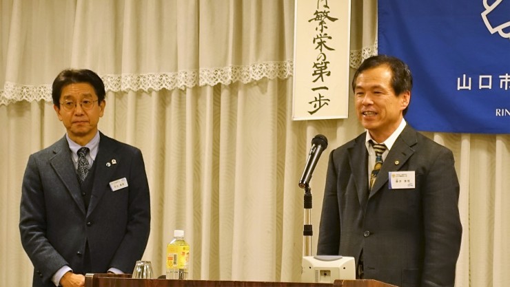 モーニングセミナーでは、新入会員証の贈呈(土田博光会員)、スタンプラリー1枚目制覇(藤井清吾幹事)の表彰後、大谷俊幸会員の会員スピーチ。