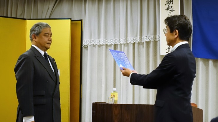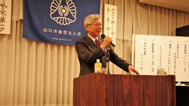 宇都要一スーパーバイザーはテーマ「今を活きる」で、苦難を乗り越え謙虚な姿勢で事業に取り組まれている様子をいくつかの苦難を乗り越えた例を挙げながら話していただきました。特に優良企業であっても毎日従業員への悪口や説教ばかりは会社が存続しなかった話は印象的でした。辛い時に心の支えに差なって切れた奥様への感謝が伝わる講話でした。