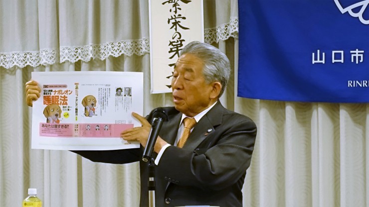 黒澤眞次参事はテーマ「資格が人生を作る」で、東京オリンピック前から消毒事業を兄弟3人で続けられ、多くの資格を取得される中、日本住血吸虫調査のため離島にセスナで飛行中に墜落事故に遭遇。奇跡的に助かり、その後感謝を込めて多くの熱帯病の防疫に携わってこられたお話から一所懸命に仕事を続けることの大切さを教えていただきました。