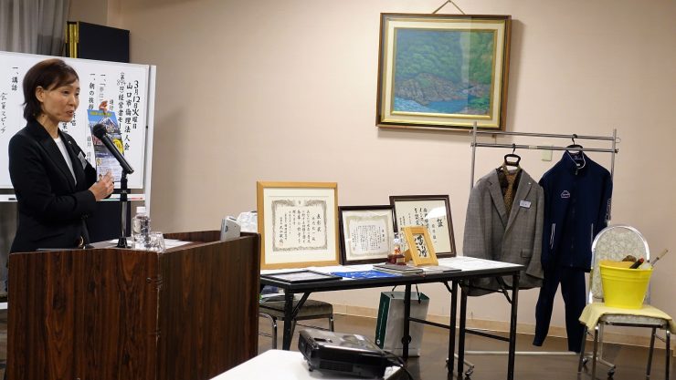 会員スピーチは、平岩女性委員長に富士研での研修とご主人に宛てた手紙の紹介でした。普段伝えられないご主人への想いを語っていただきました。