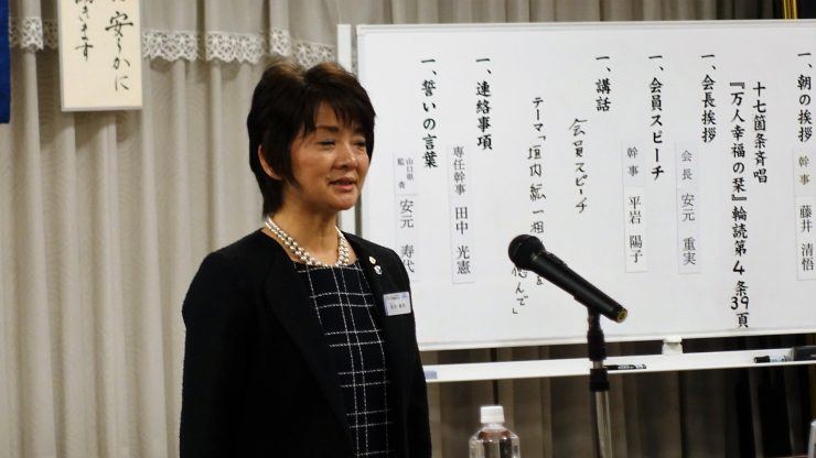 安元寿代県監査: 宴会で社長と向かいの席になりモーニンングセミナーに誘われ入会した。お茶目な言い方が印象に!「ここだけは譲れましぇーん!」(神社のトイレ掃除)。