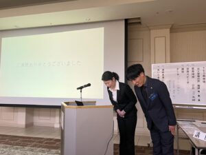 講師 清水 沙織・福重 翔太氏 (宇部市倫理法人会運営委員 JITAN BODY整体院 宇部院長・宇部市倫理法人会運営委員 sun lion English代表 )