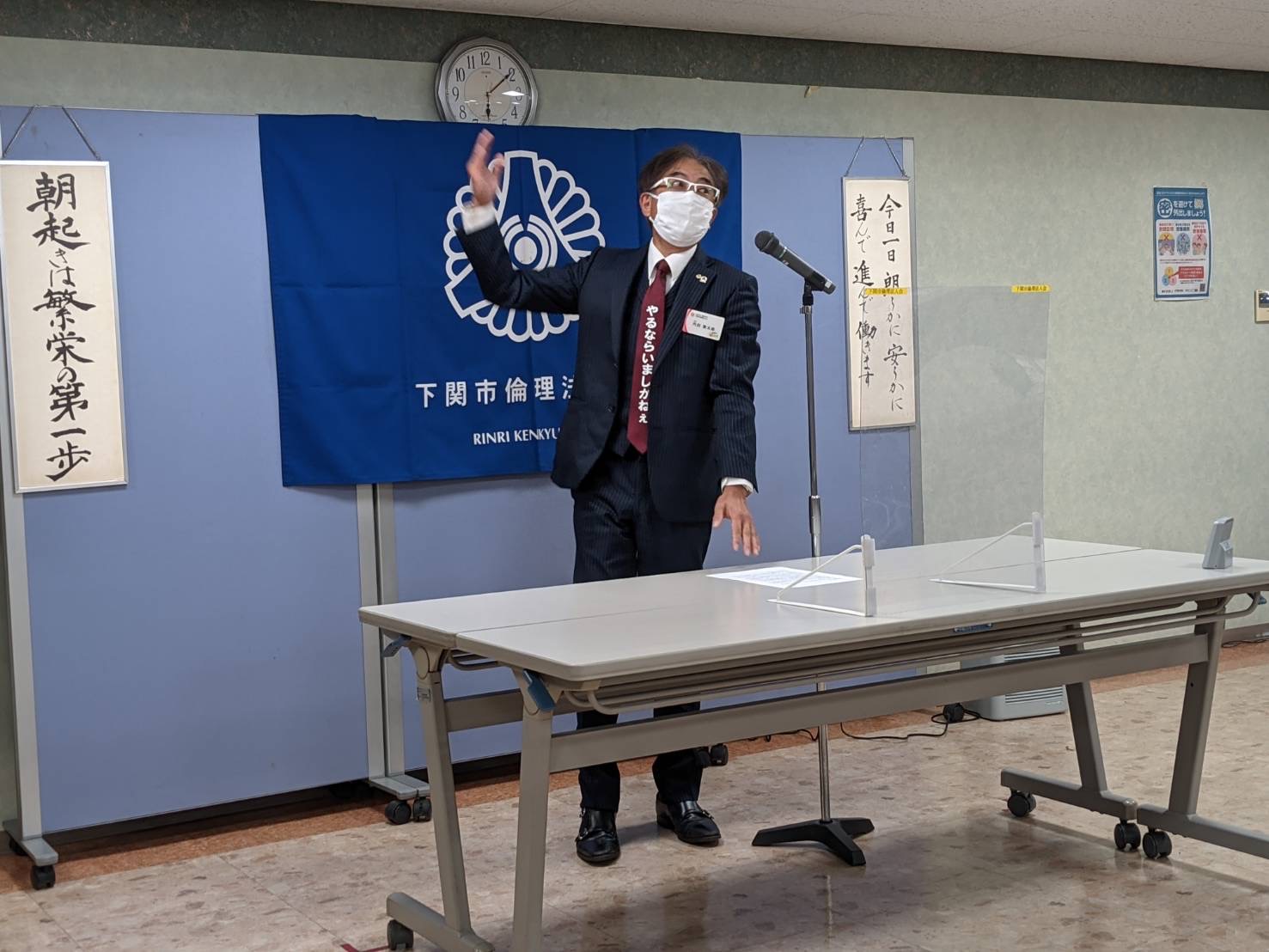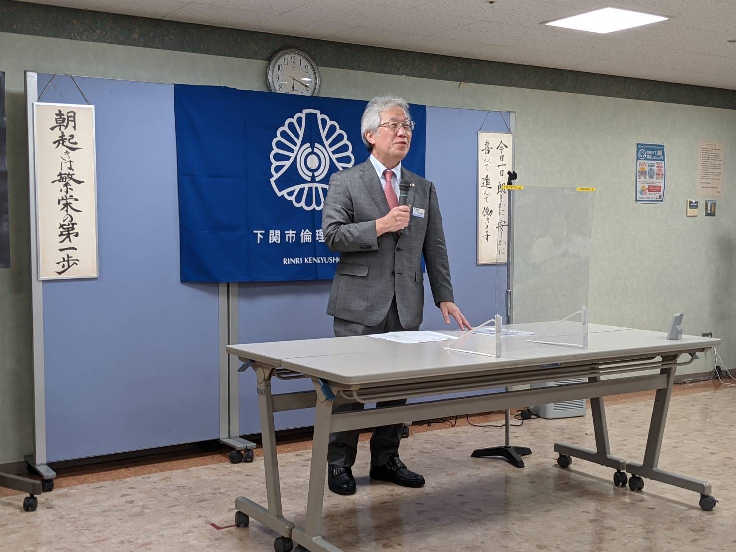 (一社)倫理研究所 法人局 法人スーパーバイザー / 社会保険労務士法人 久万田社会保険労務士事務所 代表社員 久万田 昌弘氏をお迎えし、「ホワイト企業を目指して」についての講話を拝聴しました。