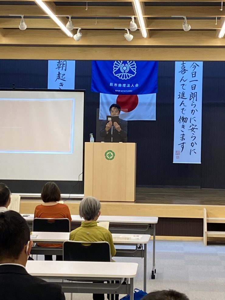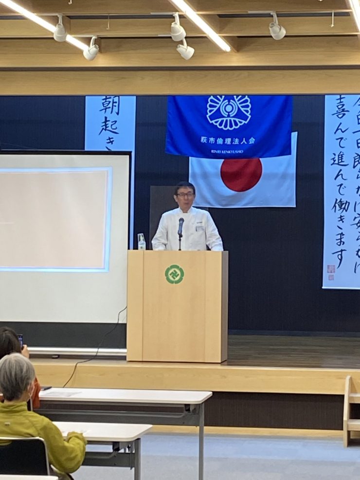 本日は山陽小野田市倫理法人会会長、有限会社みつや トロアメゾンの水上隆男社長に講話をいただきました。