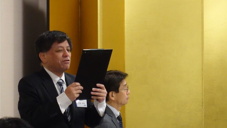 会員スピーチ:神代浩男専任幹事が、自身の事業進捗状況、倫理経営講演会に向けて、倫理実践についてスピーチを行いました。