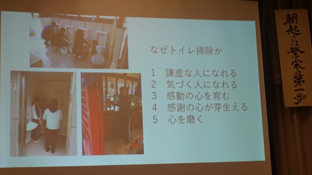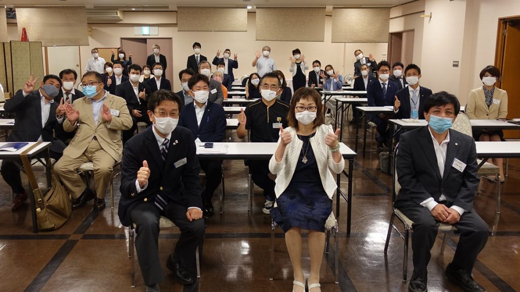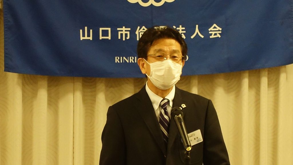 講話: 白井鏡子(宇部市)副専任幹事:「人は何のために生きるのか?」を自分のテーマとし、しっかりした会社運営と個人的な苦難をユーモアを交えながら「挑戦」と「楽しむ」を大切にしていることについて。