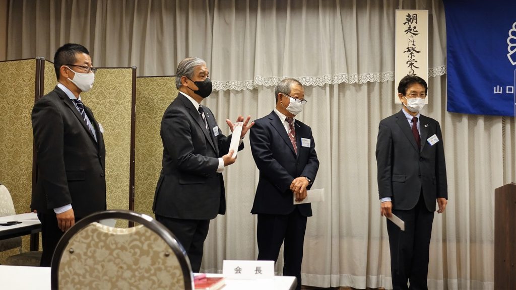 会長挨拶:中部地区スタンプラリー表彰(2枚2名、1枚3名)