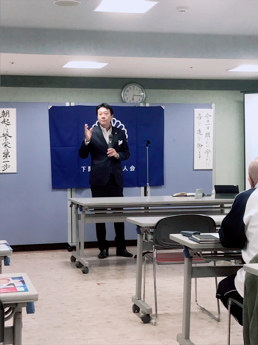 福岡県倫理法人会 北九州西地区 地区長 / 株式会社友信 代表取締役 友田 信明 氏をお迎えし、「全てはここから始まる」についての講話を拝聴しました。