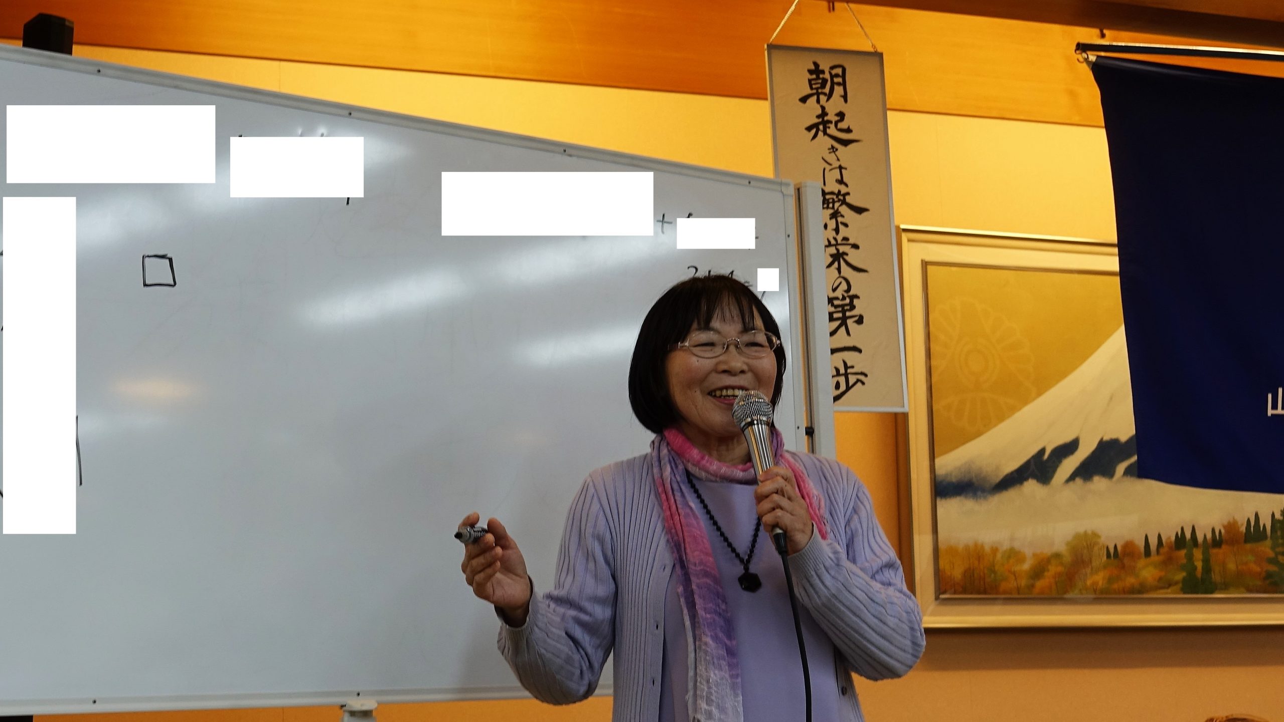 講話:数秘術を通しての自分の人生と自己紹介から「性格は変わることを実感している。」の言葉には、説得力がありました。優しい言葉遣いと人懐っこい雰囲気で楽しい講話をありがとうございました。