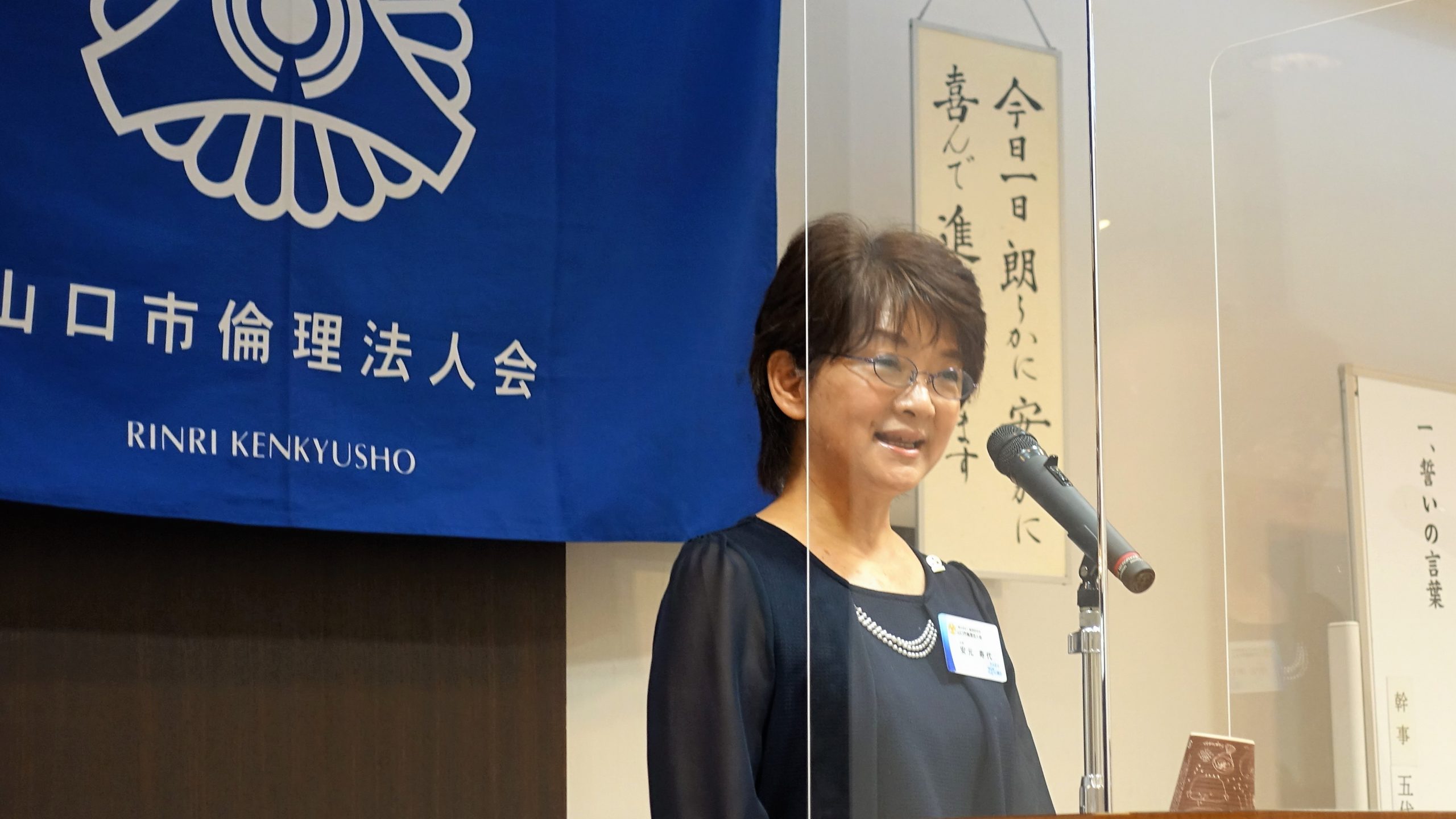 会員スピーチ:吉冨千恵幹事:入会して丁度一年を振り返って、自分だけが大変なのではなく、講話を聴いて気持ちが楽になったこと、そして、亡き父から言われていた3つのことが一致していて、「これがよい。」と、父が背中をおしてくれています。