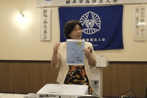 神戸市倫理法人会からお越しいただきました、村山 順子 法人レクチャラー、ほとばしる元気、キラッキラッの笑顔、エネルギーいっぱいの講話がはじまりました。