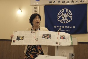 村山 法人レクチャラーの人生を変えた10行の手紙。明日がある保証はない、今を一生懸命生きる。後ではない今しかない、気づき即効。即効がもたらした数々のよき体験をお話しいただきました。また、このよき体験は誰のお陰様なのかを考え、感謝の気持ちをお手紙で綴る。手紙がもたらした素晴らしき出来事。村山 法人レクチャラーの人生と共にある手紙のすばらしさを全国に伝えていきたいと、やりたいことをオープンにして、今全国を行脚する日々を送っていること。まさに倫理実践者である村山 法人レクチャラーの喜びに満ちた講話、倫理を学び実践する私達に、勇気と希望をいただきました。よし、今から実践だ!