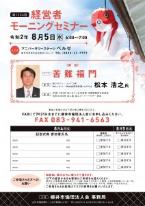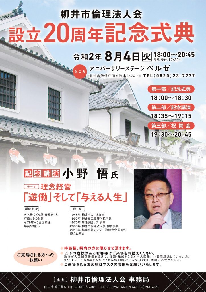 8月4日(火)柳井市倫理法人会 設立20周年記念式典を開催致します。