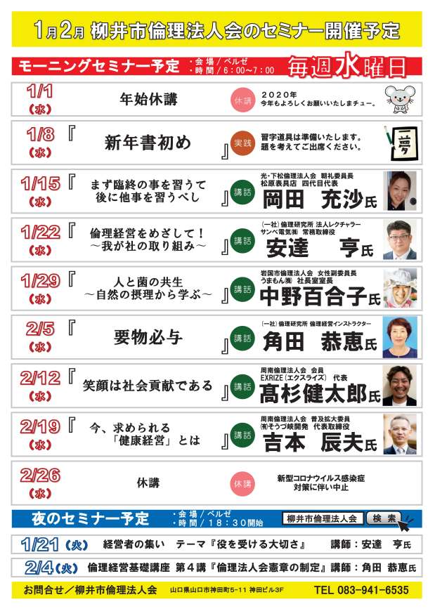 2020年1月1日(水) 1月-2月モーニングセミナー予定表