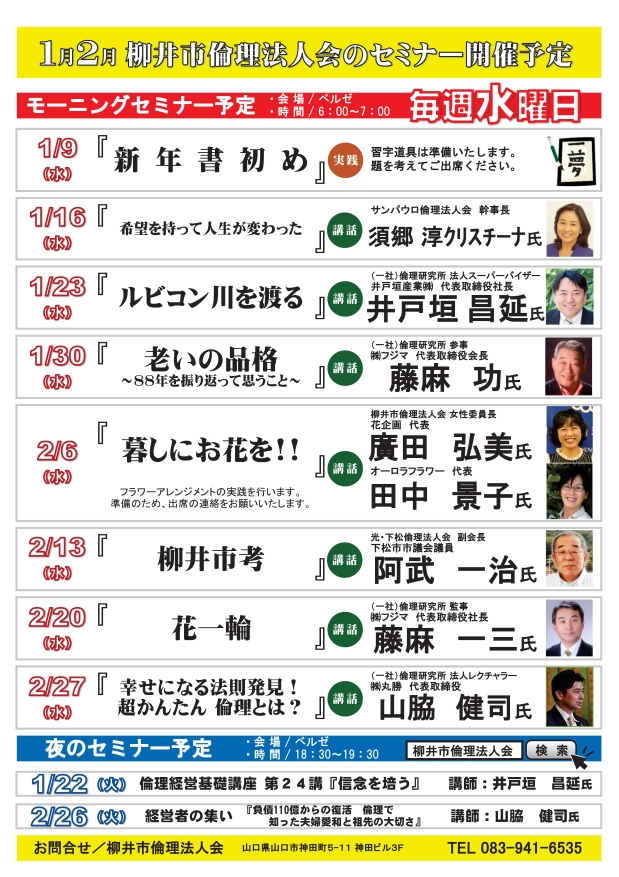 2019年1月1日(火) 1月-2月モーニングセミナー2ヶ月予定表
