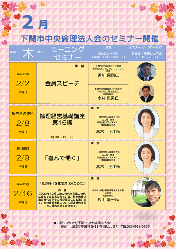 2月モーニングセミナー予定表