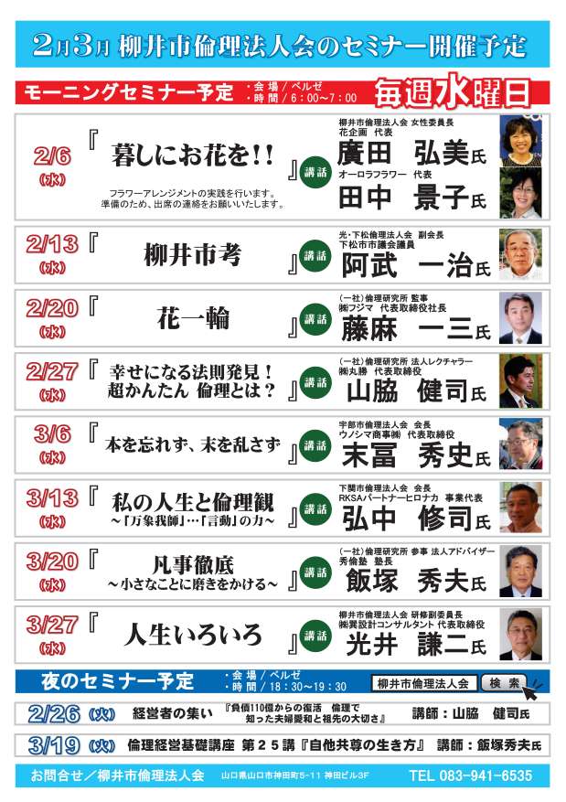 2019年2月1日(金) 2月-3月モーニングセミナー2ヶ月予定表