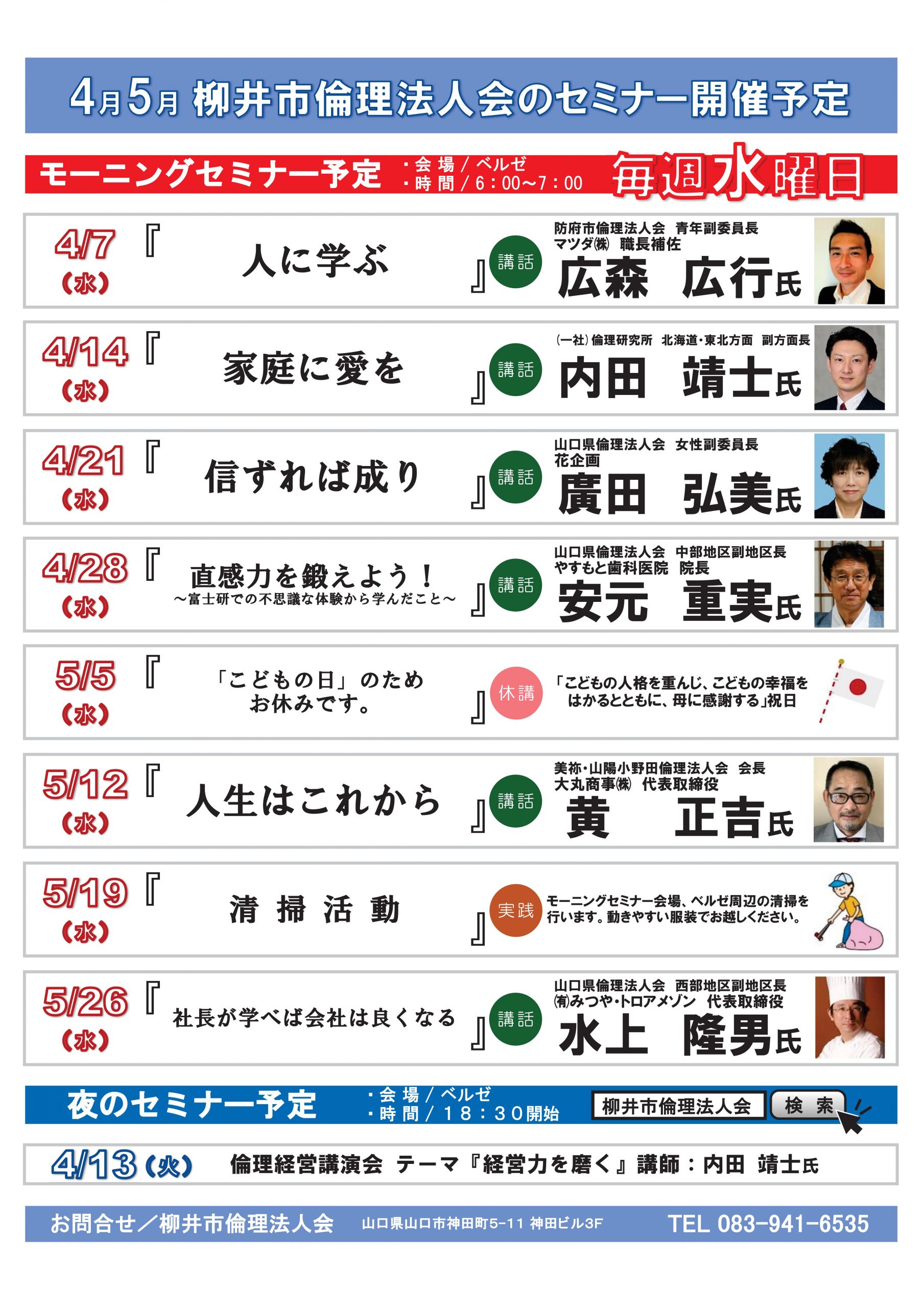 2021年4月1日(木) 4月5月モーニングセミナー予定表