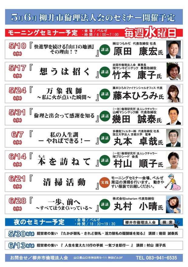 2017年5月1日(月) 5月-6月モーニングセミナー2ヶ月予定表