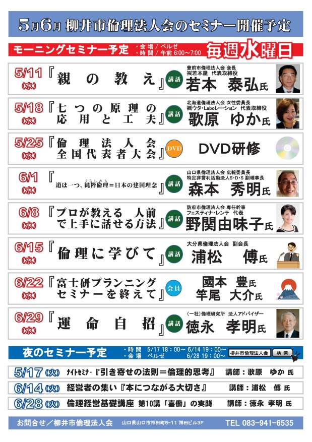 2016年5月1日(日) 5月-6月モーニングセミナー2ヶ月予定表